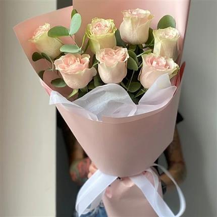 哈萨克斯坦鲜花-7朵粉玫瑰