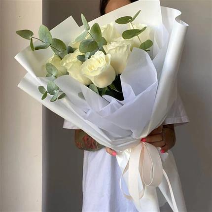 哈萨克斯坦鲜花-7朵白玫瑰