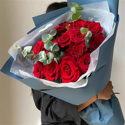 哈萨克斯坦鲜花-15朵红玫瑰
