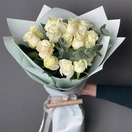 哈萨克斯坦鲜花-白玫瑰15枝