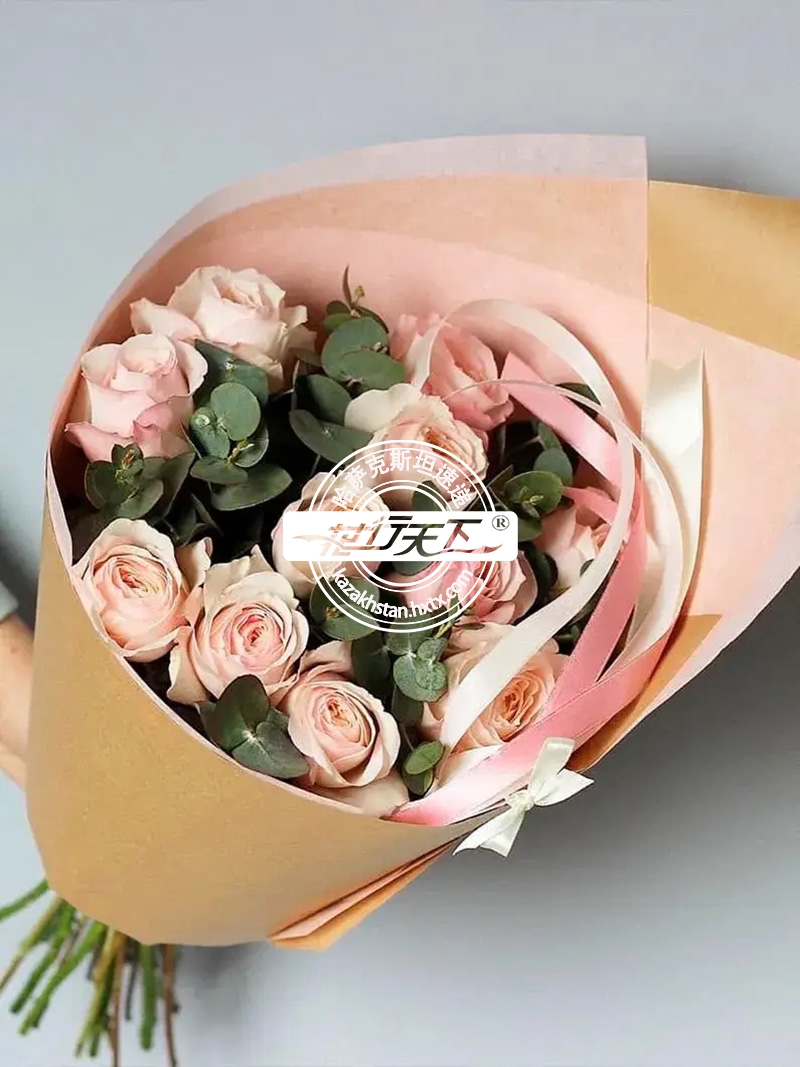 哈萨克斯坦鲜花-11朵粉玫瑰