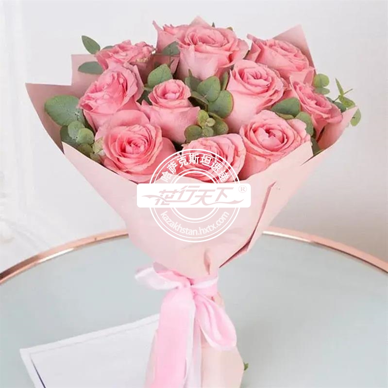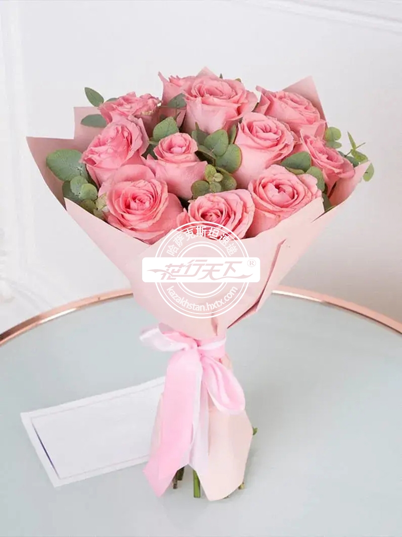 哈萨克斯坦鲜花-11朵粉红玫瑰