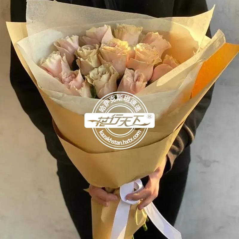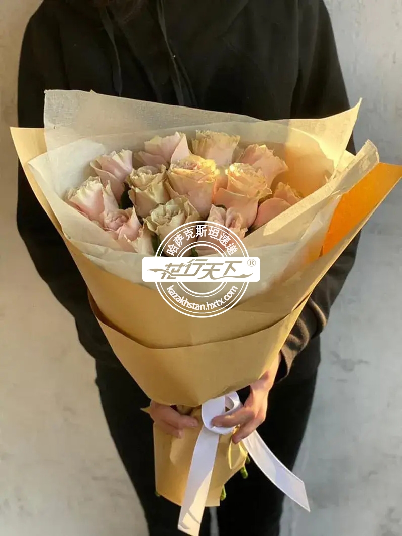 哈萨克斯坦鲜花-11朵粉红世界品种玫瑰