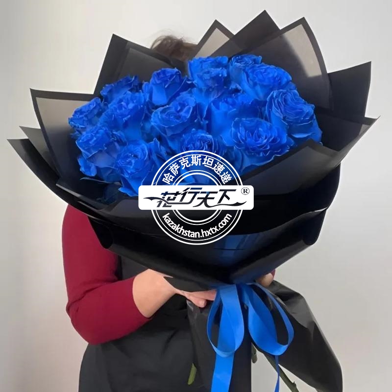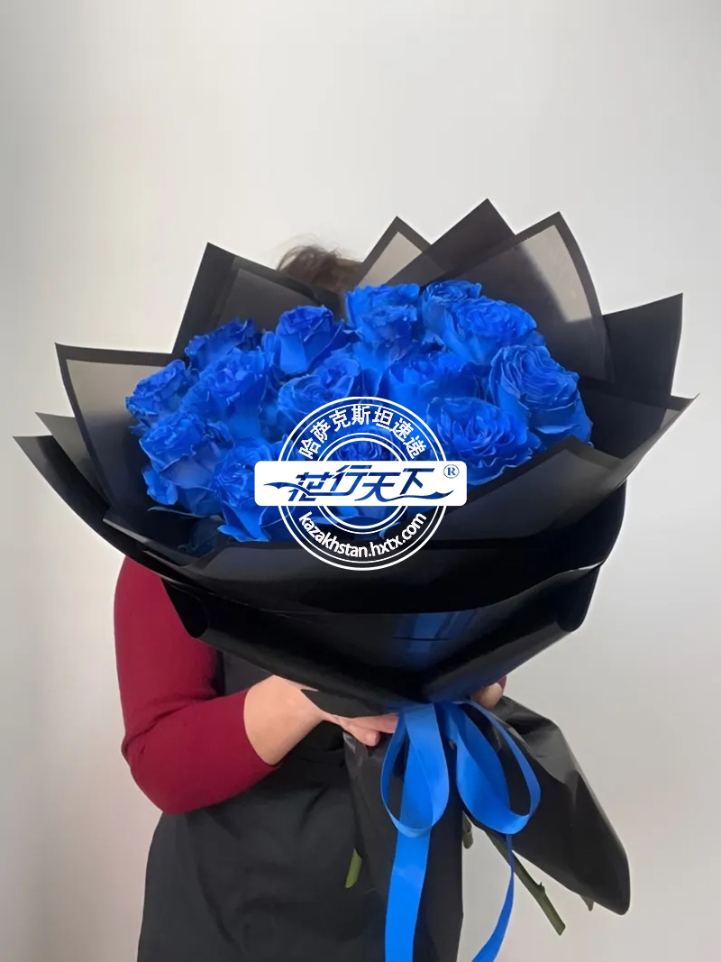 哈萨克斯坦鲜花-15枝蓝色玫瑰