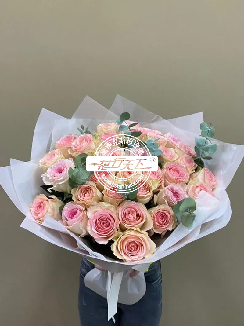 哈萨克斯坦鲜花-33枝粉玫瑰